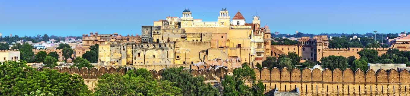 The fort boasts of its awesome mirror work, flawless carvings and beautiful paintings. The fort has two entrances, one is the Suraj Pol (Sun gate) and the other one is the Karan Pol in the east direction. Within the premises of the fort are several stunning palaces. Moon Palace, Karan Mahal, Rang Mahal, Phool Mahal and Cloud Palace are a few to name. Each palace is nicknamed depending on their respective themes. The fort also houses an imposing temple named Har Mandir where several Royal affairs were celebrated in the past such as wedding and childbirth. Inside the museum of the fort you can see a rare collection of manuscripts, jewelry, jars, carpets, weapons, treaties, decorations and the royal messages known as Firmans. |